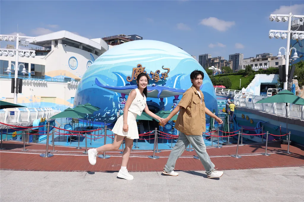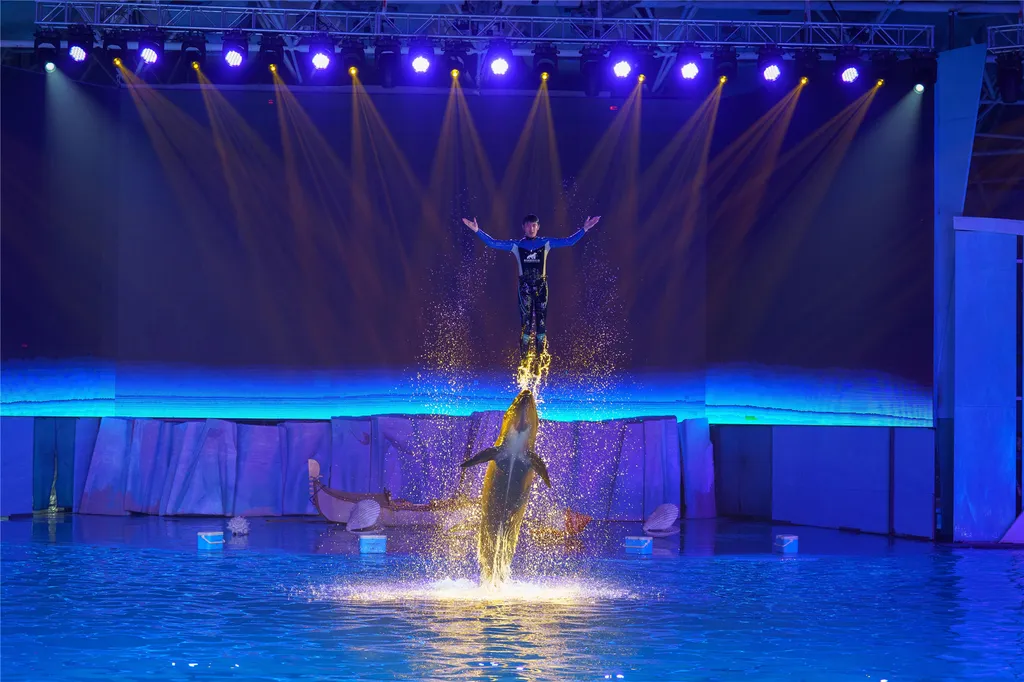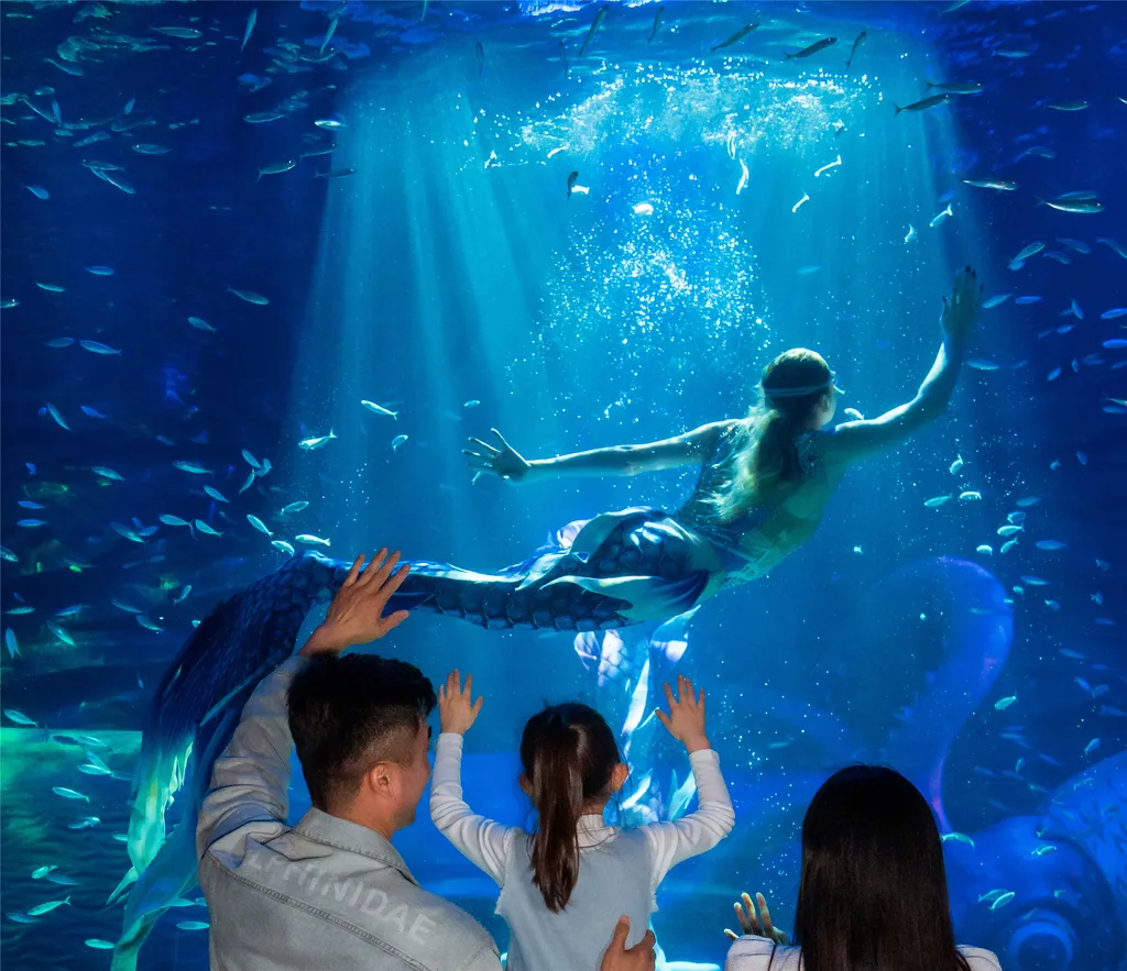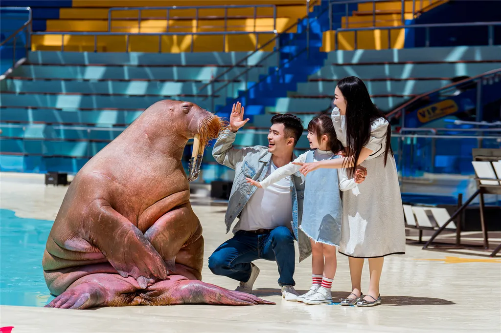 Оказавшись здесь, вы сможете вблизи наблюдать за полярными животными, такими как белухи, дельфины, моржи и белые медведи, а также любоваться более чем 50 000 морских обитателей, включая биссу, песчаных тигровых акул, золотых каранксов, морских орлов, медуз и морских коньков. Но это еще не всё! Шесть захватывающих шоу — «Морское шоу китов и дельфинов», «Шоу белух», «Шоу русалок в глубинах океана», «Легенда о морских львах — Пава», «Научное магическое шоу» и «Волшебный океан» — а также семь популярных зон для фото: 360° прозрачный тоннель с медузами, подводный тоннель, аквариум с белухами, бассейн с глубоководными рыбами, галерея очаровательных морских обитателей, залив сияющих золотых рыбок и площадь «Сюрприз от китов» — сочетают в себе реальные морские пейзажи с искусственными декорациями. Это позволит вам «попасть в полярные регионы и сохранить воспоминания», ощутить волшебство и очарование океана и пережить удивительное приключение: «пересечь оба полюса за один день и получить тысячи сюрпризов».