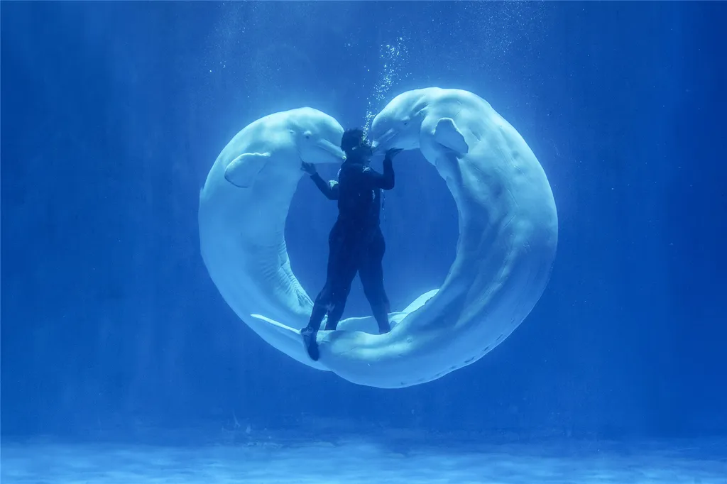 2. Романтика|Шоу белух: Белухи превращаются в танцоров, а человек и кит вместе исполняют прекрасный любовный танец.