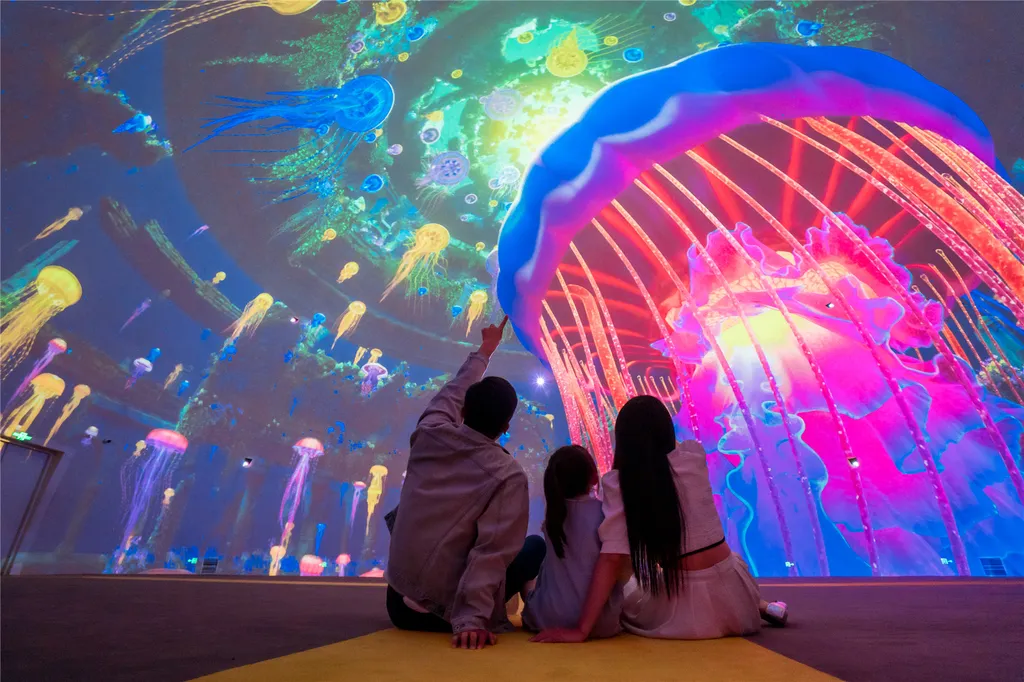 1. 360-градусный прозрачный туннель с медузами: откройте для себя волшебный мир медуз, где переливающийся свет и блики создают фантастическую атмосферу. Оказавшись в центре океана, вы встретите изящных и грациозных «морских фей» — зрелище поистине завораживающее и волшебное.